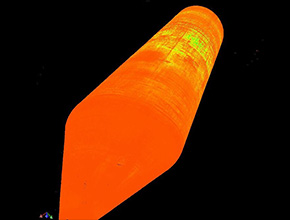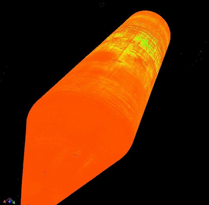 Using High-Tech Laser Technology, a precise cloud map of the internal walls of the Coke Drum is obtained through scanning. The processed and analyzed points result in a map that provides important information regarding bulges and anomalies and the bases for further integrity analyses (FEA).